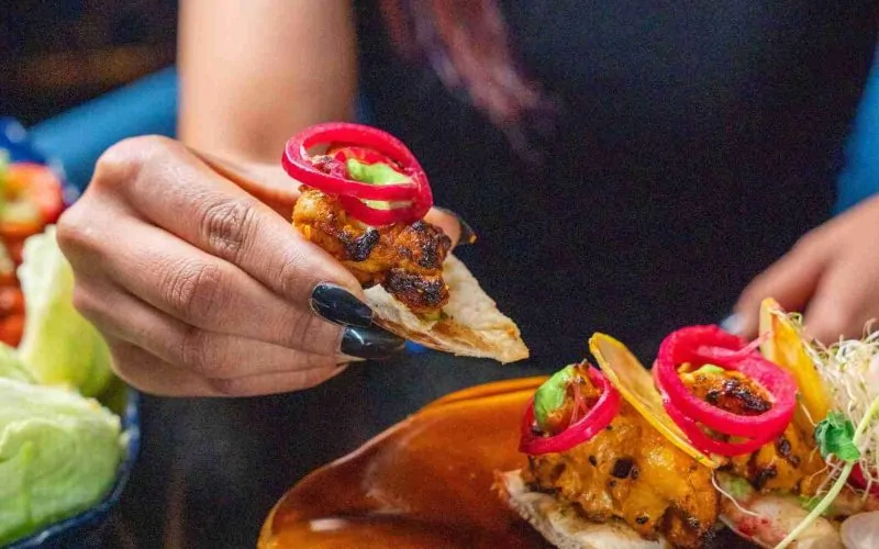 Indian street-style stir fried boneless chicken.